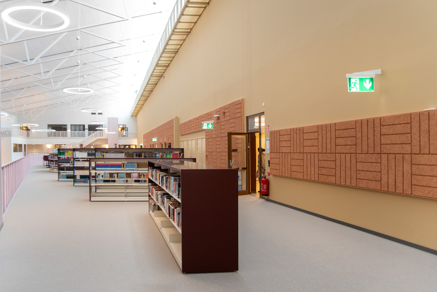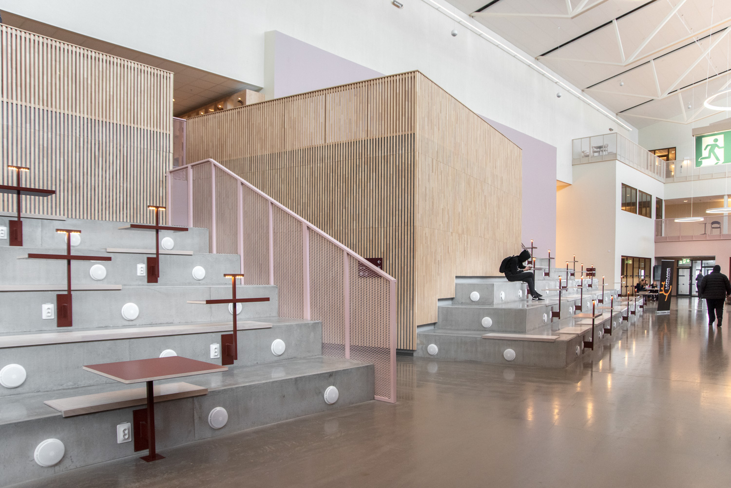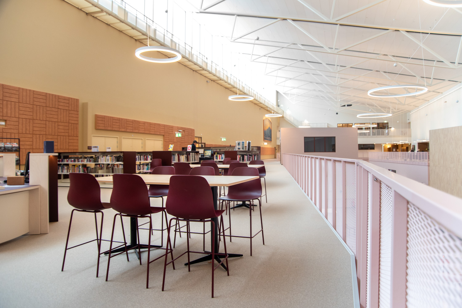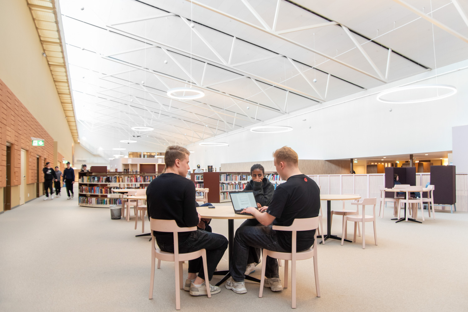 I hjärtat av byggnaden finns ett centralt torg som utgör en länk mellan kunskapsstaden och resten av stadskärnan. Härifrån leds besökaren in i ett rymligt atrium där stadens och skolans verksamheter möts i ett gemensamt och offentligt rum. Här ligger också biblioteket, där en generös mängd dagsljus kommer från stora glaspaneler på taket, vilket inbjuder besökarna att titta upp mot himlen och följa årstidernas olika skiftningar.