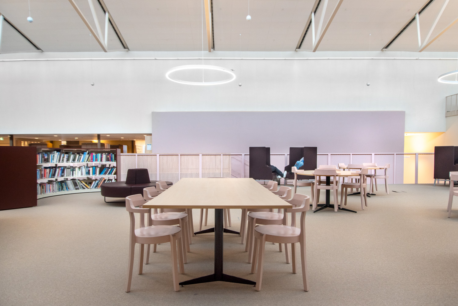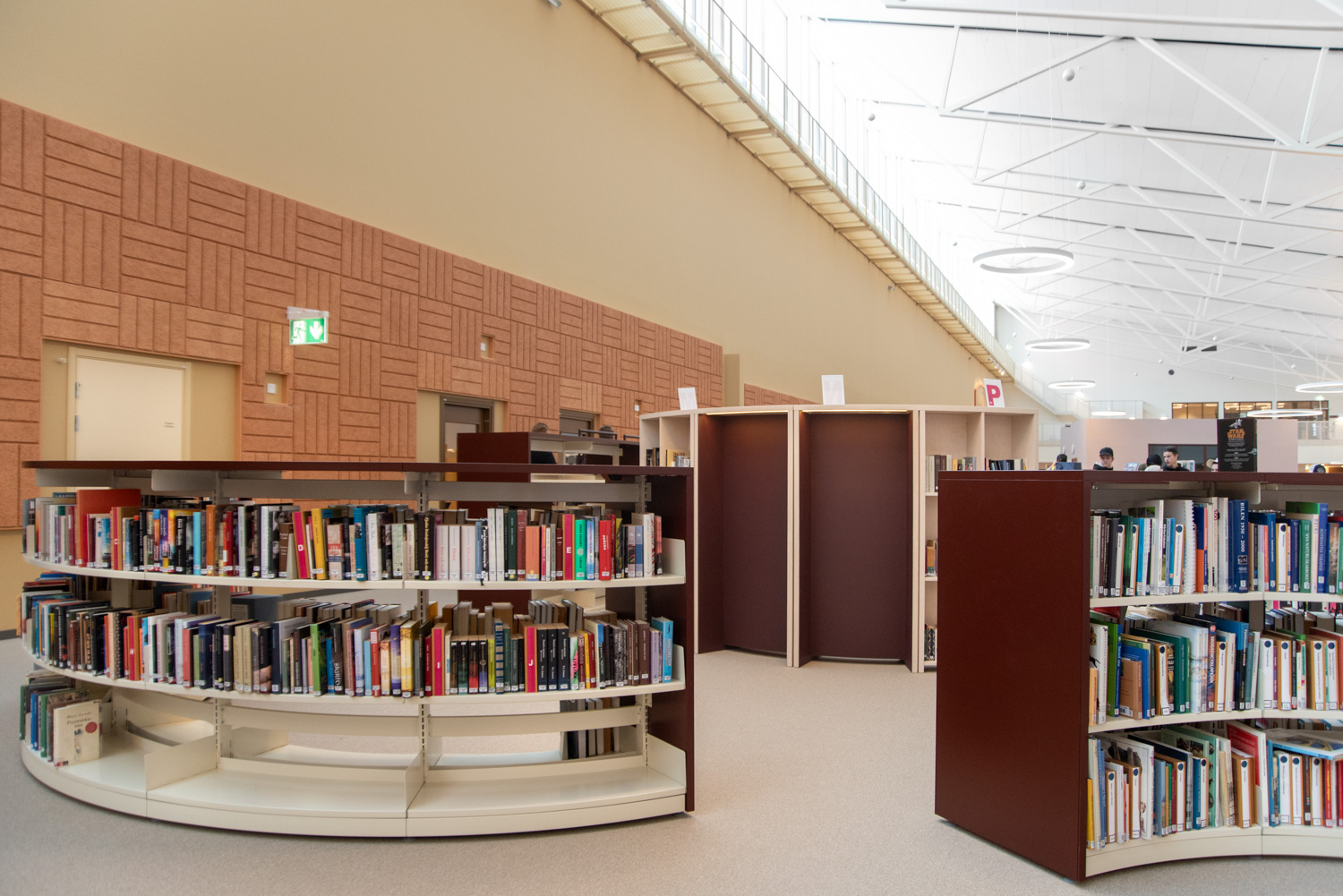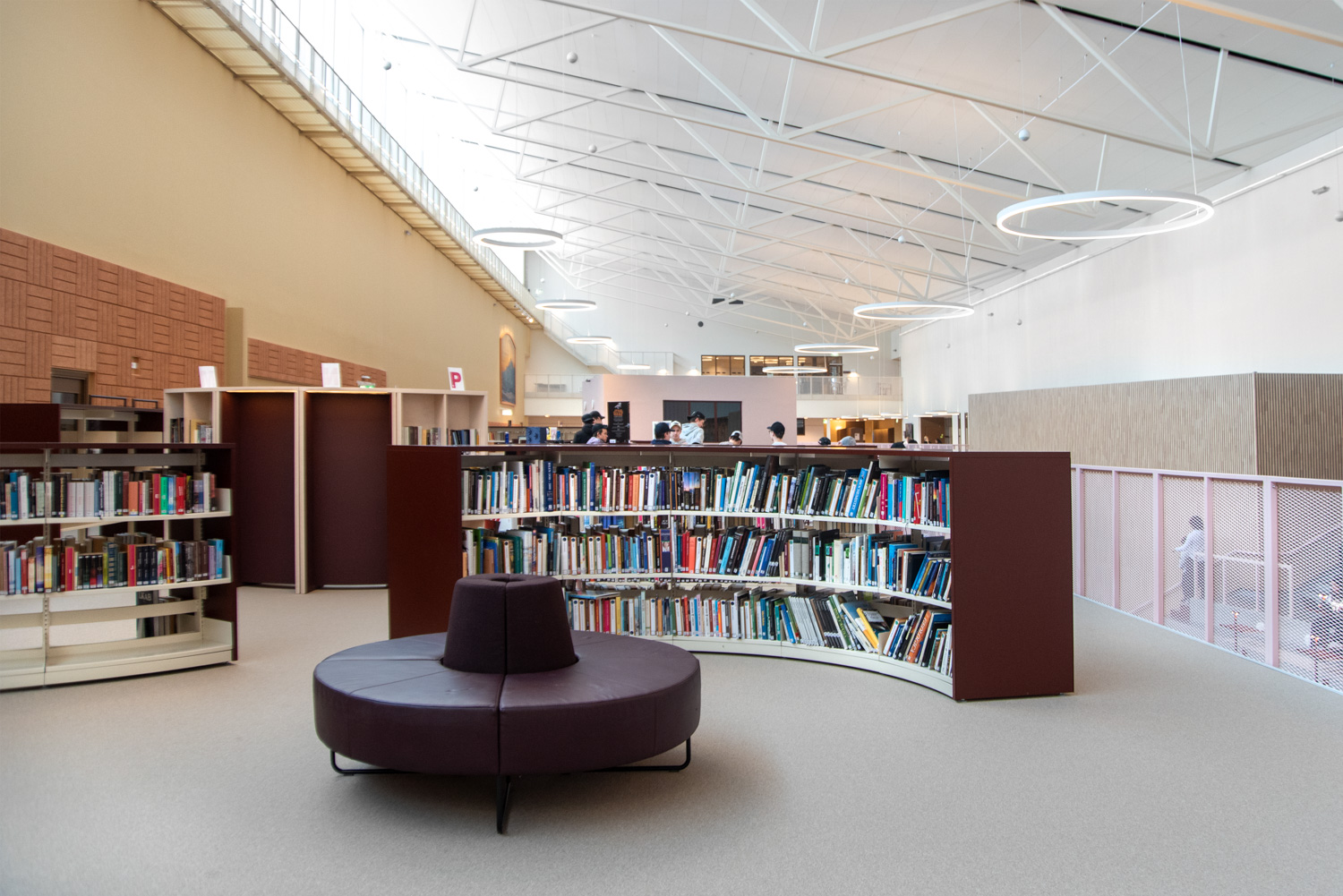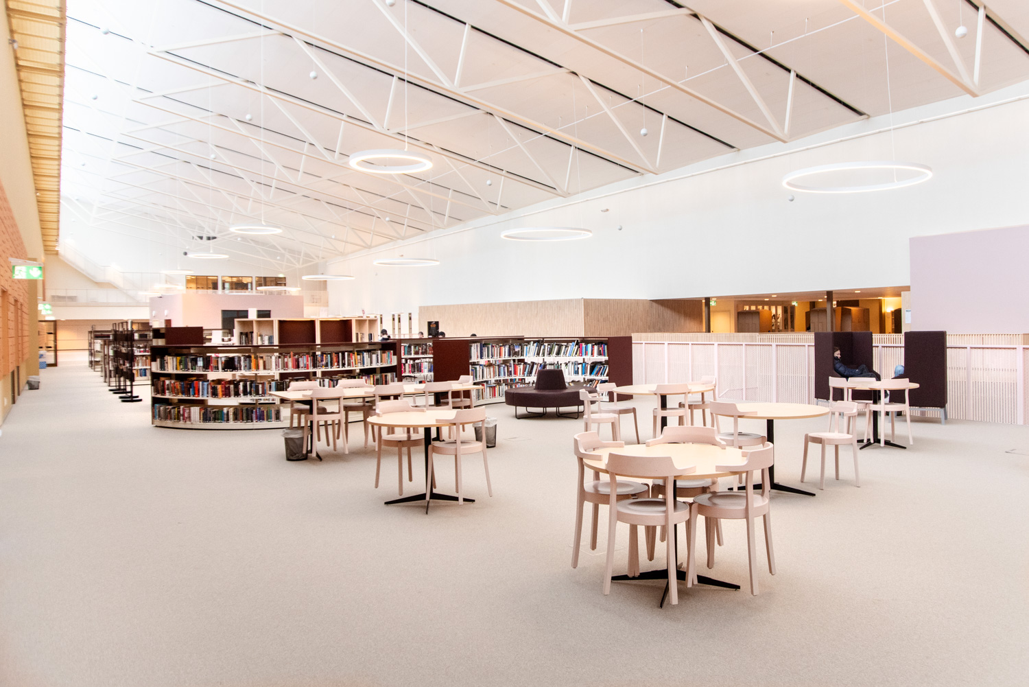 I hjärtat av byggnaden finns ett centralt torg som utgör en länk mellan kunskapsstaden och resten av stadskärnan. Härifrån leds besökaren in i ett rymligt atrium där stadens och skolans verksamheter möts i ett gemensamt och offentligt rum. Här ligger också biblioteket, där en generös mängd dagsljus kommer från stora glaspaneler på taket, vilket inbjuder besökarna att titta upp mot himlen och följa årstidernas olika skiftningar.