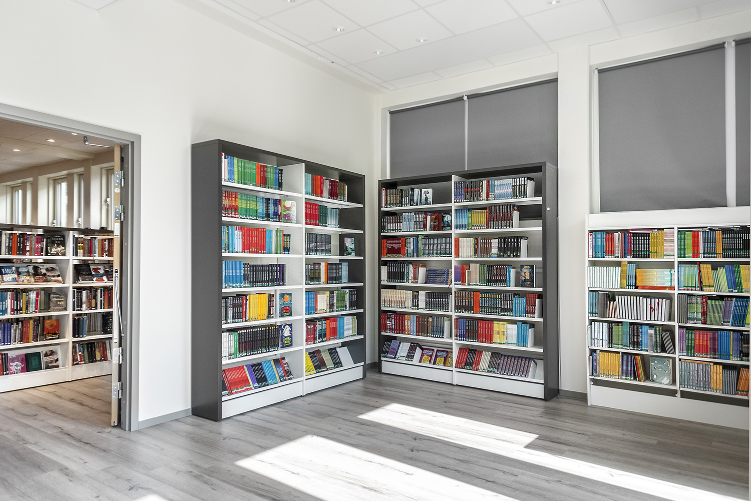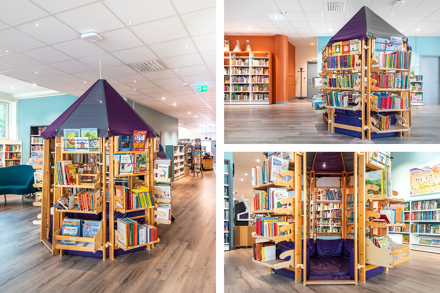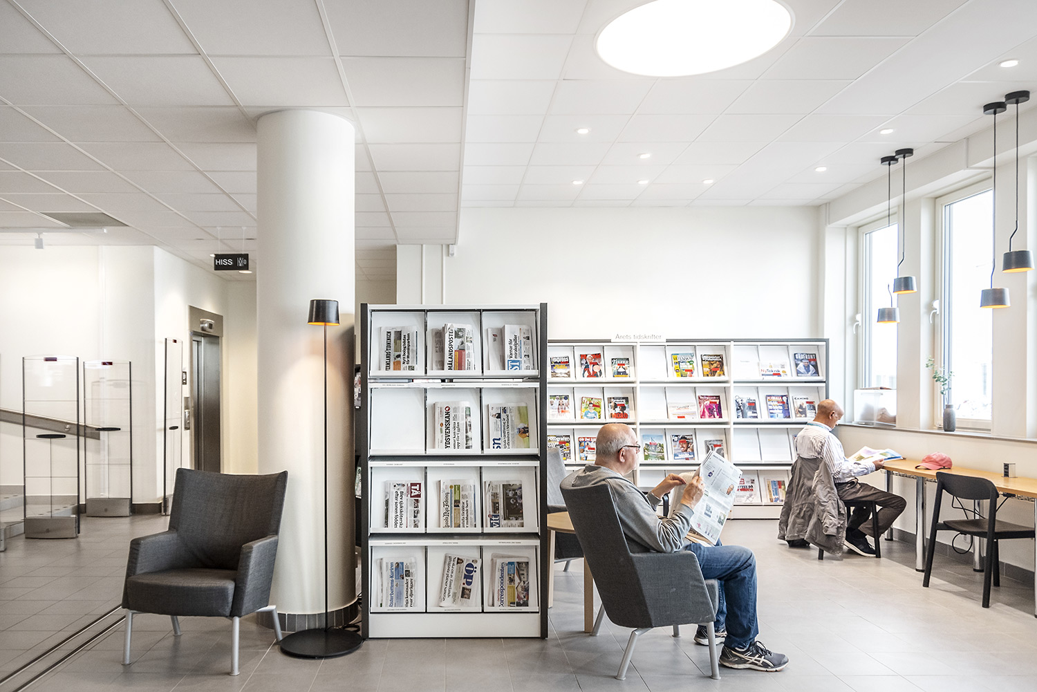 ”Ytterväggen mot torget var tidigare täckt av bokhyllor. Vi ville ha mer luft och ljus och öppnade därför upp större fönster i bokhallen. I ett slag fick vi då inte bara bättre ljus utan också högre hyllor som rymmer våra böcker.