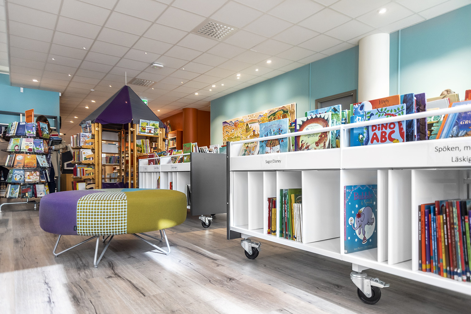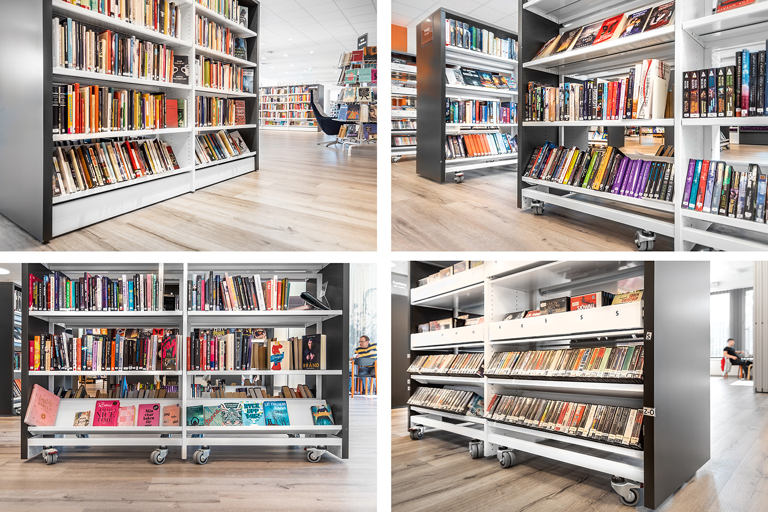 Att lokalen är flexibelt möblerad är också viktigt. Flera hyllskepp står därför på hjul för att enkelt kunna flyttas undan när vi har program för allmänheten.”