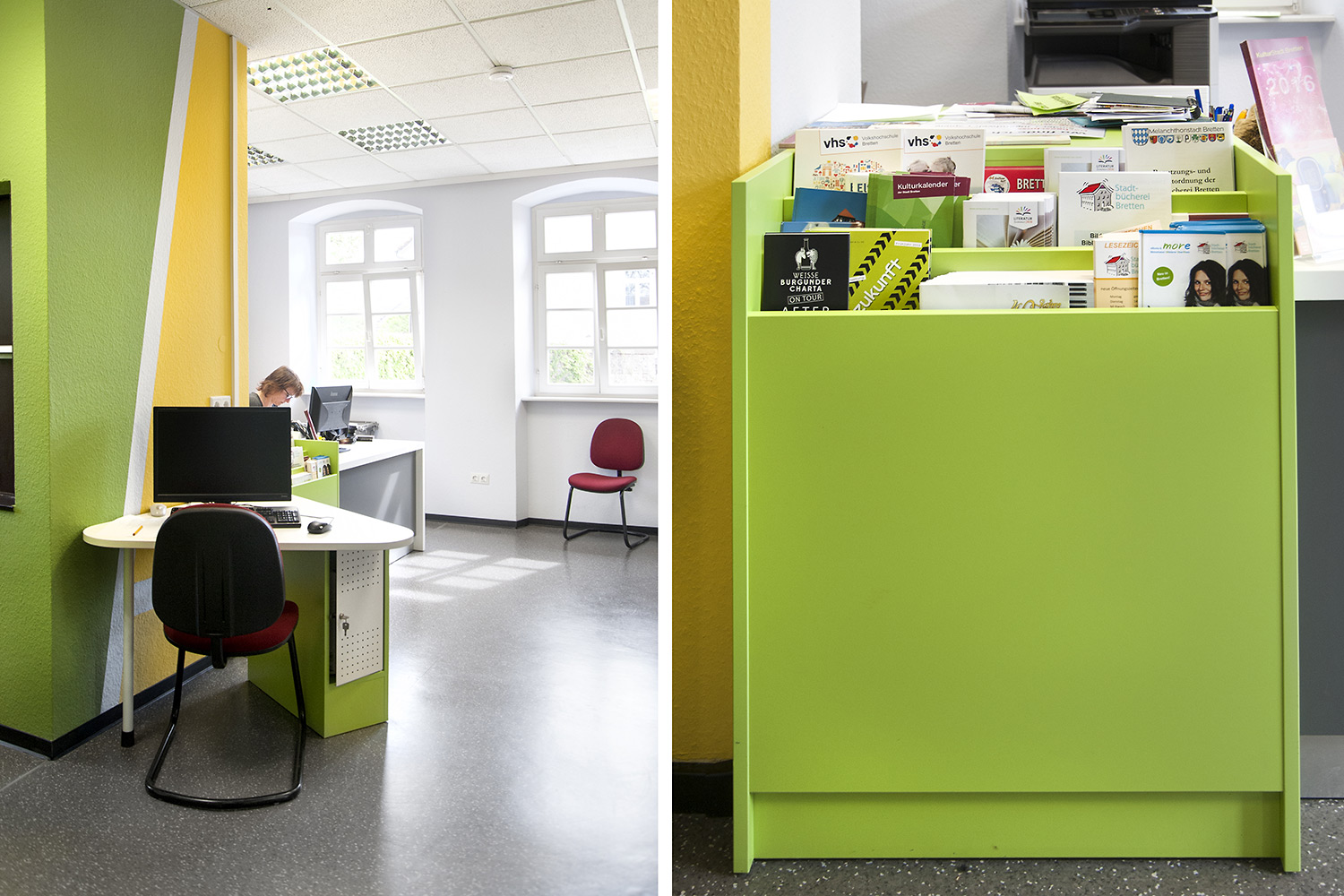 Brettens folkbibliotek återfinns i en hundraårig byggnad som nu uppdaterats med ny biblioteksinredning. Inform disk, Labyrinth exponeringstorn och en uppsättning med helt vilda exponeringsställ tillför en ny look i de befintliga lokalerna.