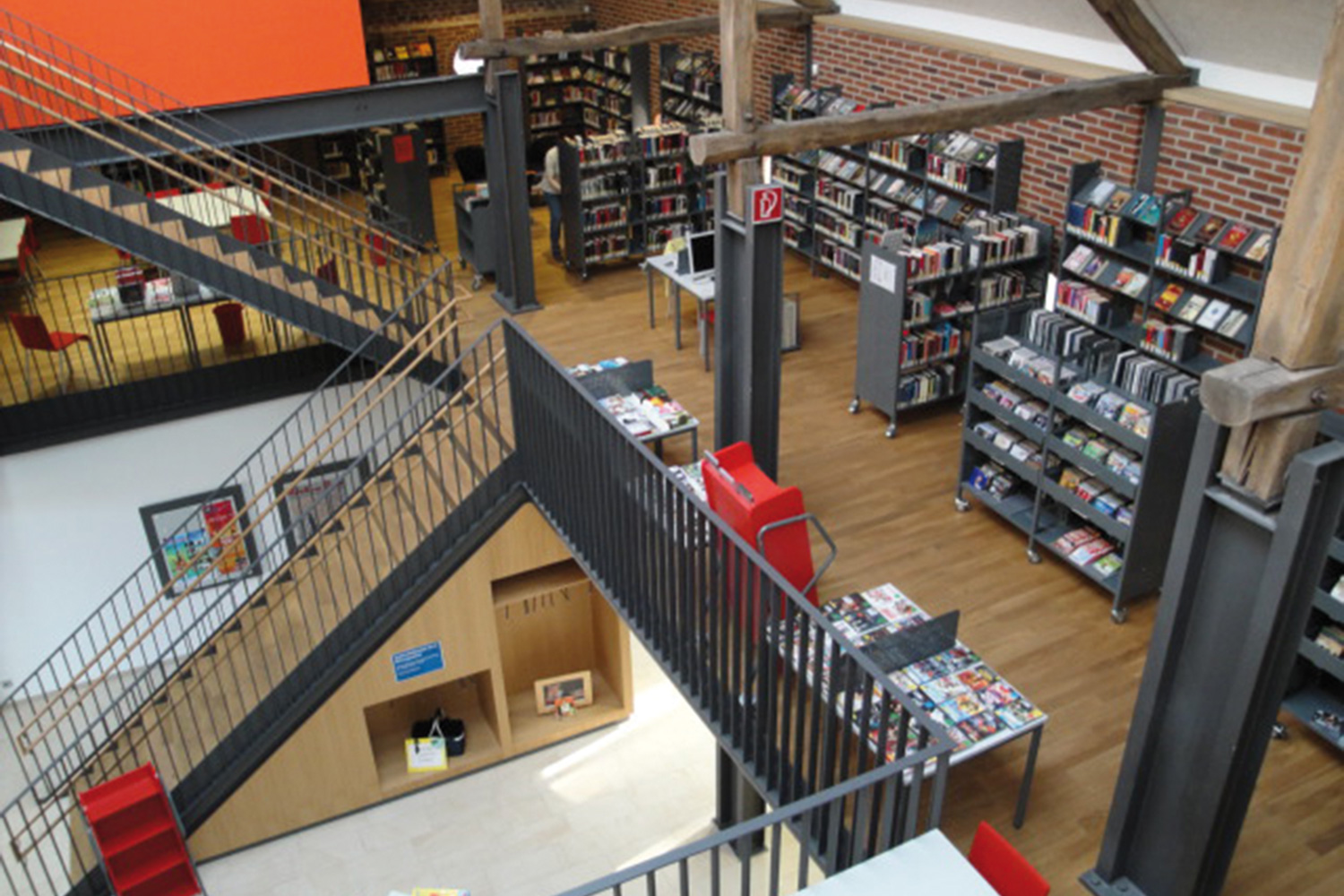 Biblioteket i stadsdelen Schloss Horst i Gelsenkirchen är utformat för att hysa ungefär 17.000 medieenheter. Projektet, som designats av arkitektfirman Pfeiffer Kellermann Preckel, öppnades i juni 2011.