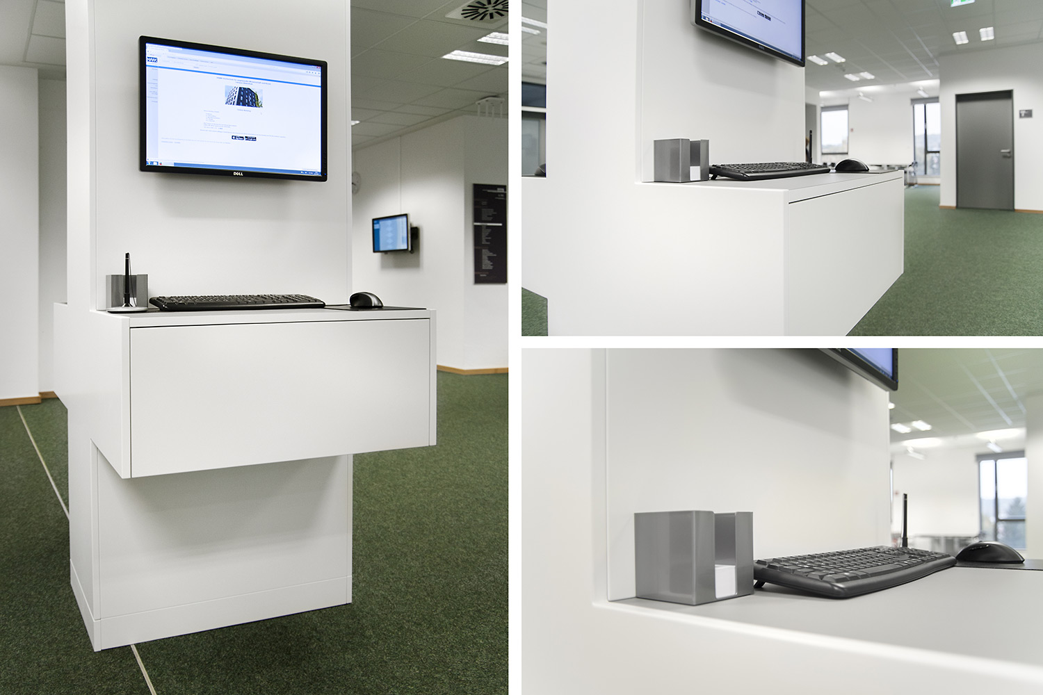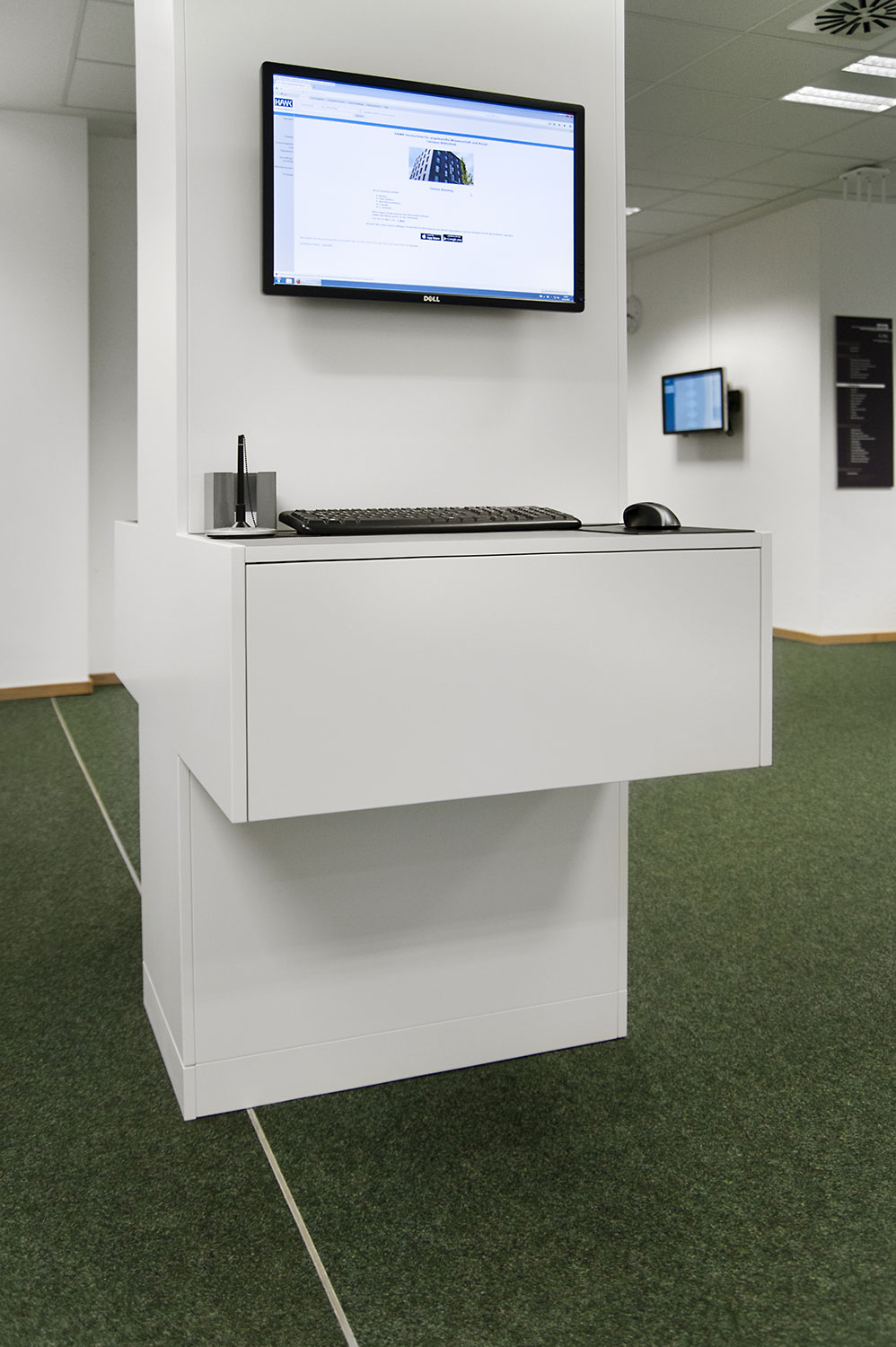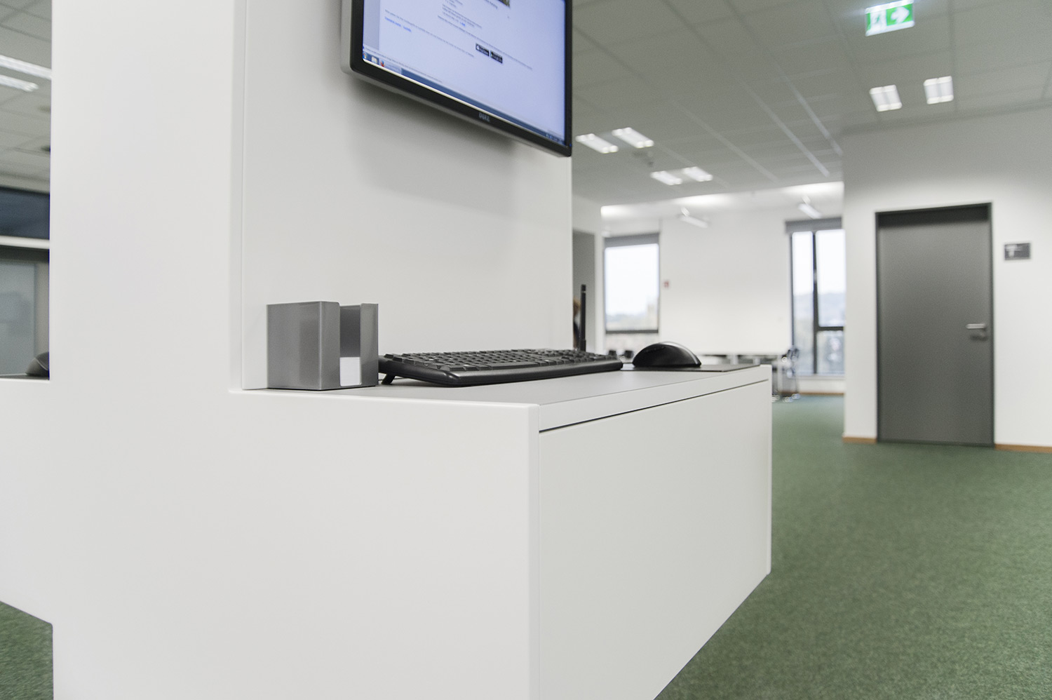 Förutom tekniken är även arkitektur och inredning samtida. Ett genomgående färgkoncept ger en behaglig atmosfär att studera och arbeta i.