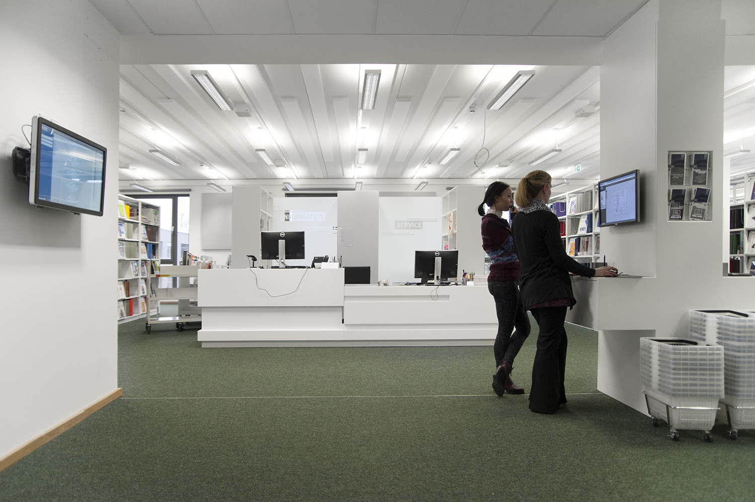 Biblioteket är utrustat med en rad tekniska lösningar såsom elektroniska informationssystem, möjlighet att boka leveransservice via chip, flera datorarbetsplatser, WiFi, en banbrytande inlärningslounge och utvecklad digital service som gör biblioteket till en föregångare på området.