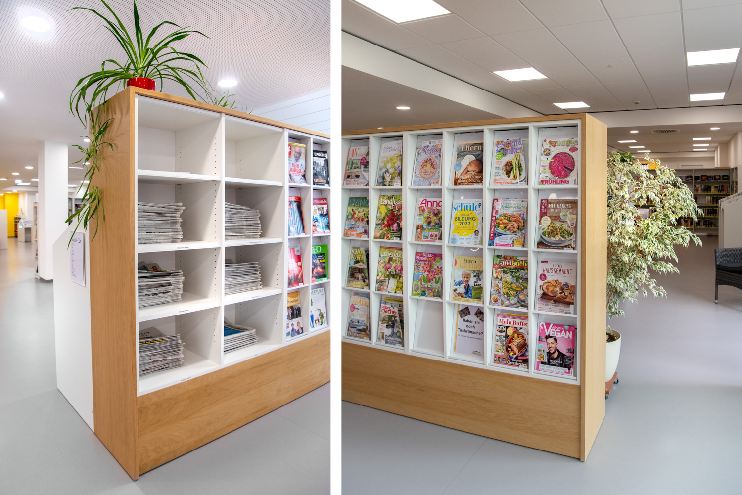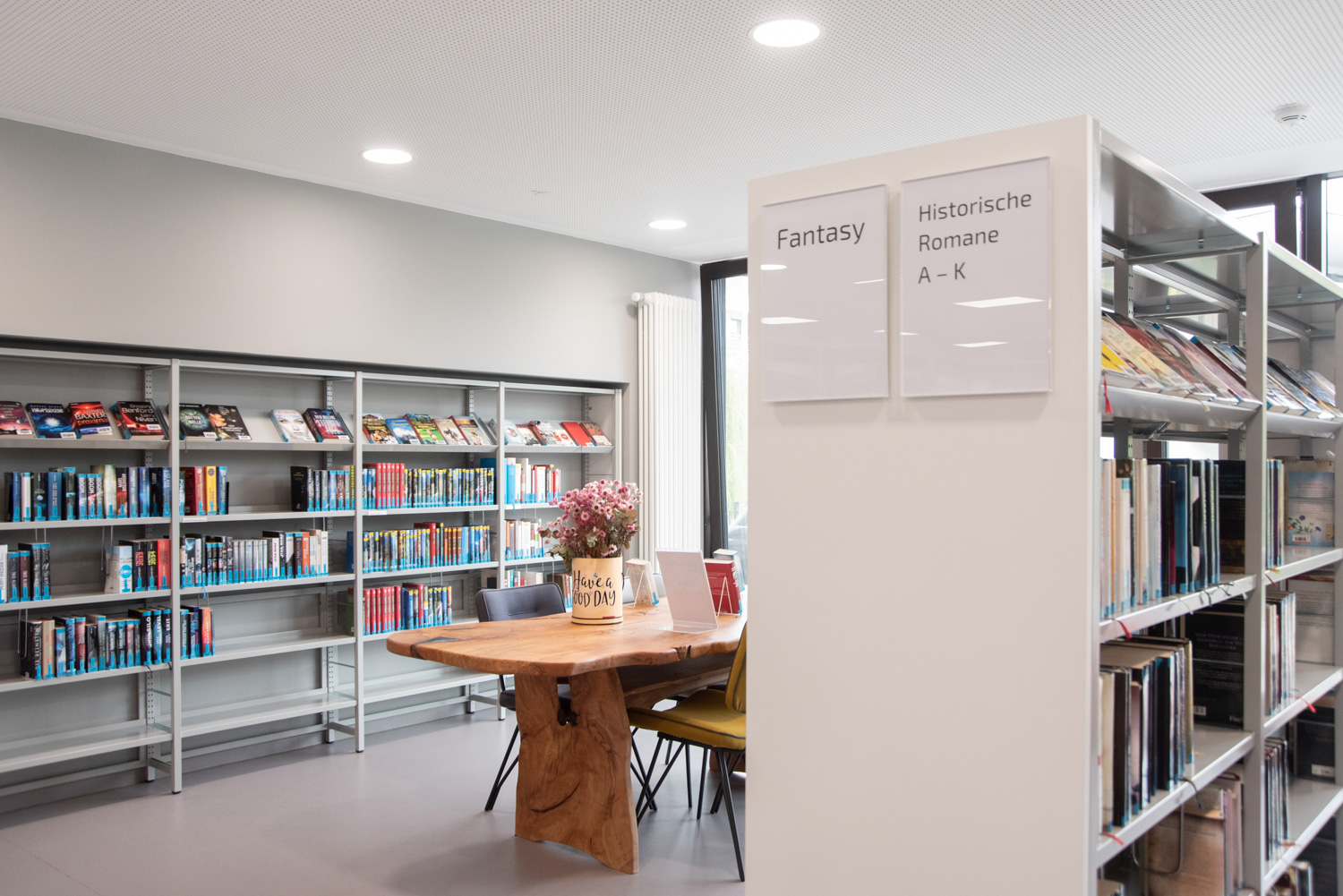 Befintliga och nya biblioteksmöbler i skön förening