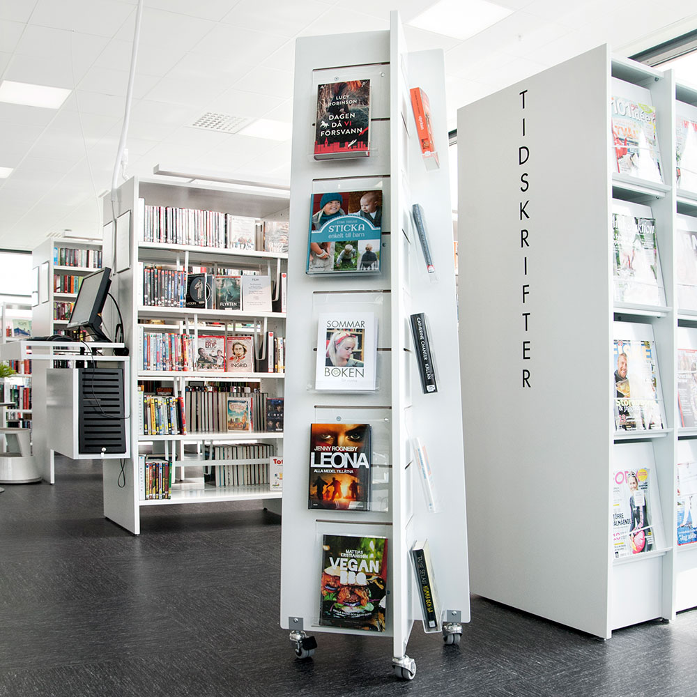 Skapa attraktiva fokuspunkter för dina besökare. Smart förvarings- och exponeringslösning för böcker och andra media.
