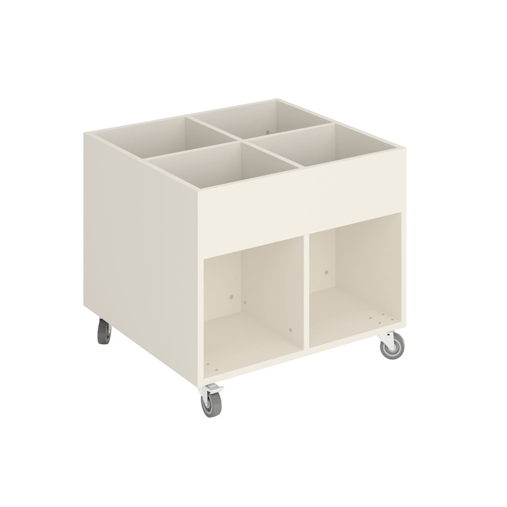 Sara Midi är ett bilderbokstråg med fyra exponeringsfack överst och fyra förvaringsfack under. Lämpligt för barn.