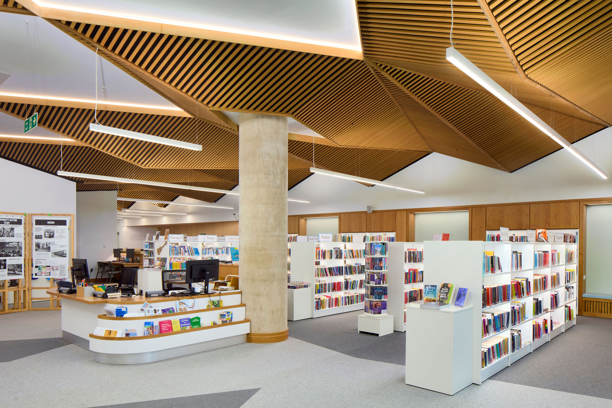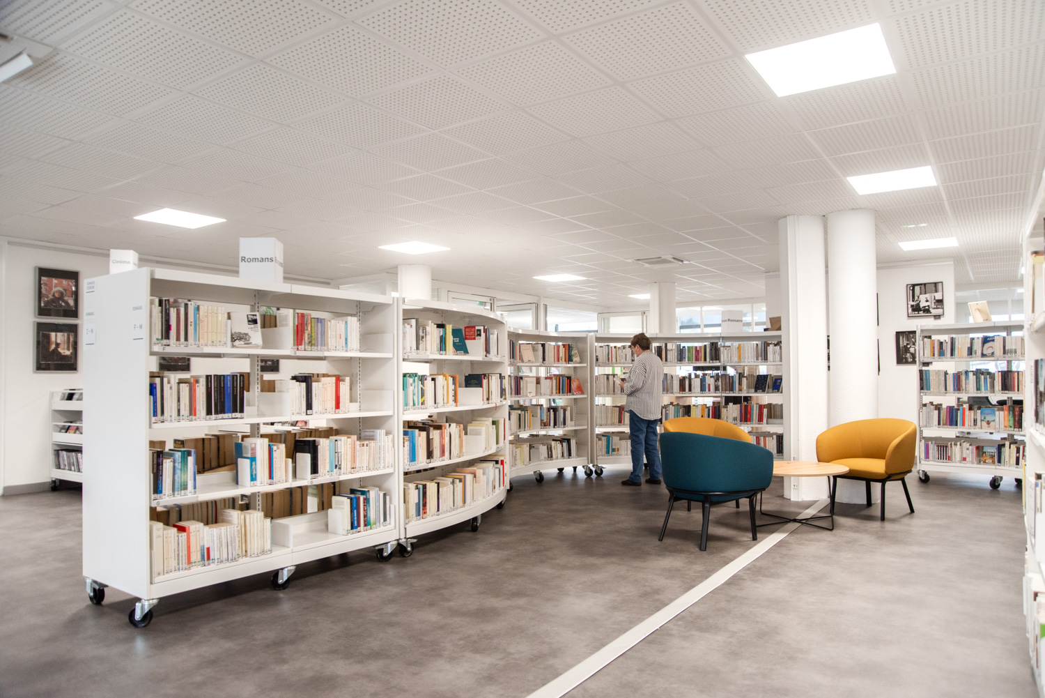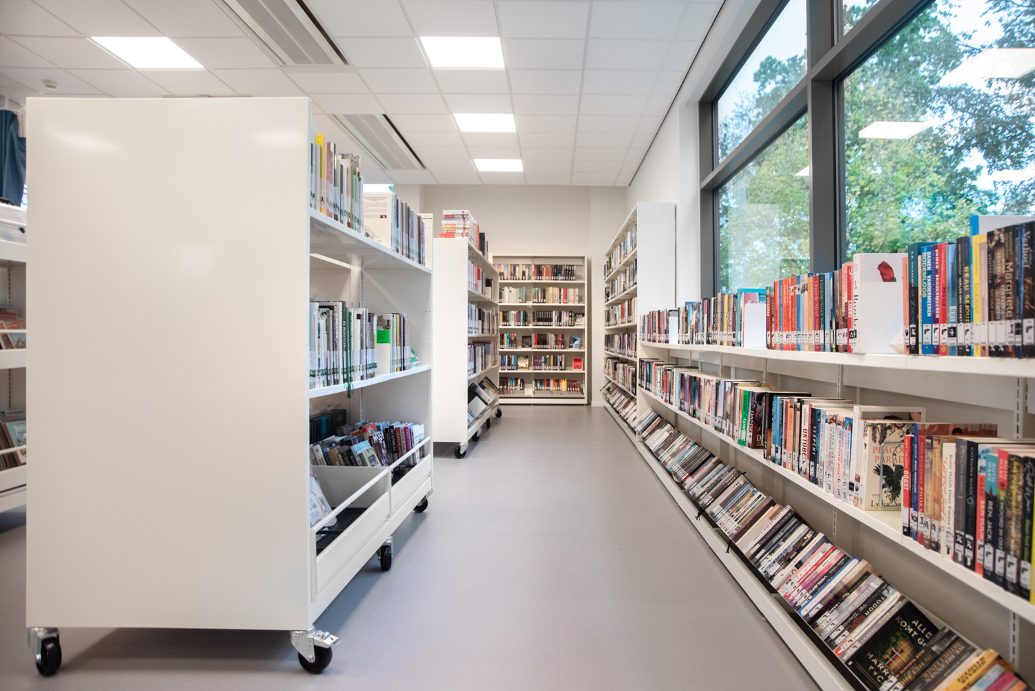 Räfflade gummimattor i exponeringsfacken säkerställer att även ett mindre antal böcker står stadigt och upprätt.