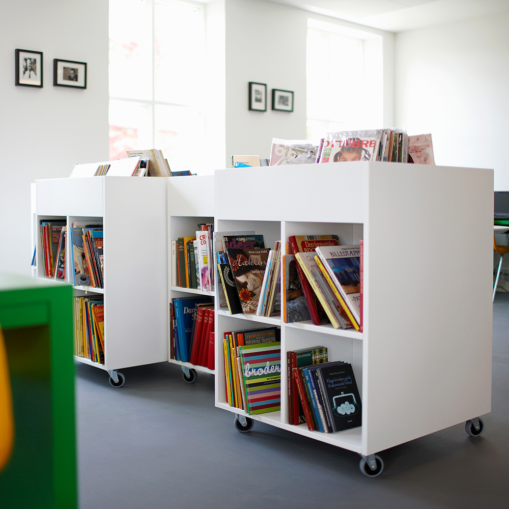 Sara är en serie bilderbokstråg som finns i både rund och fyrkantig form samt i tre olika höjder för att för att du ska kunna välja den bästa och mest flexibla lösningen för din biblioteksmiljö.