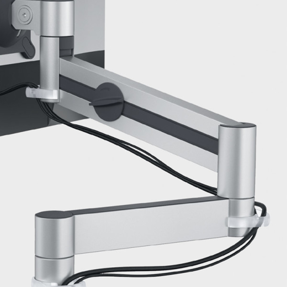 Den justerbara skärmarmen är en särskilt lämplig lösning för en ergonomisk arbetsplats.