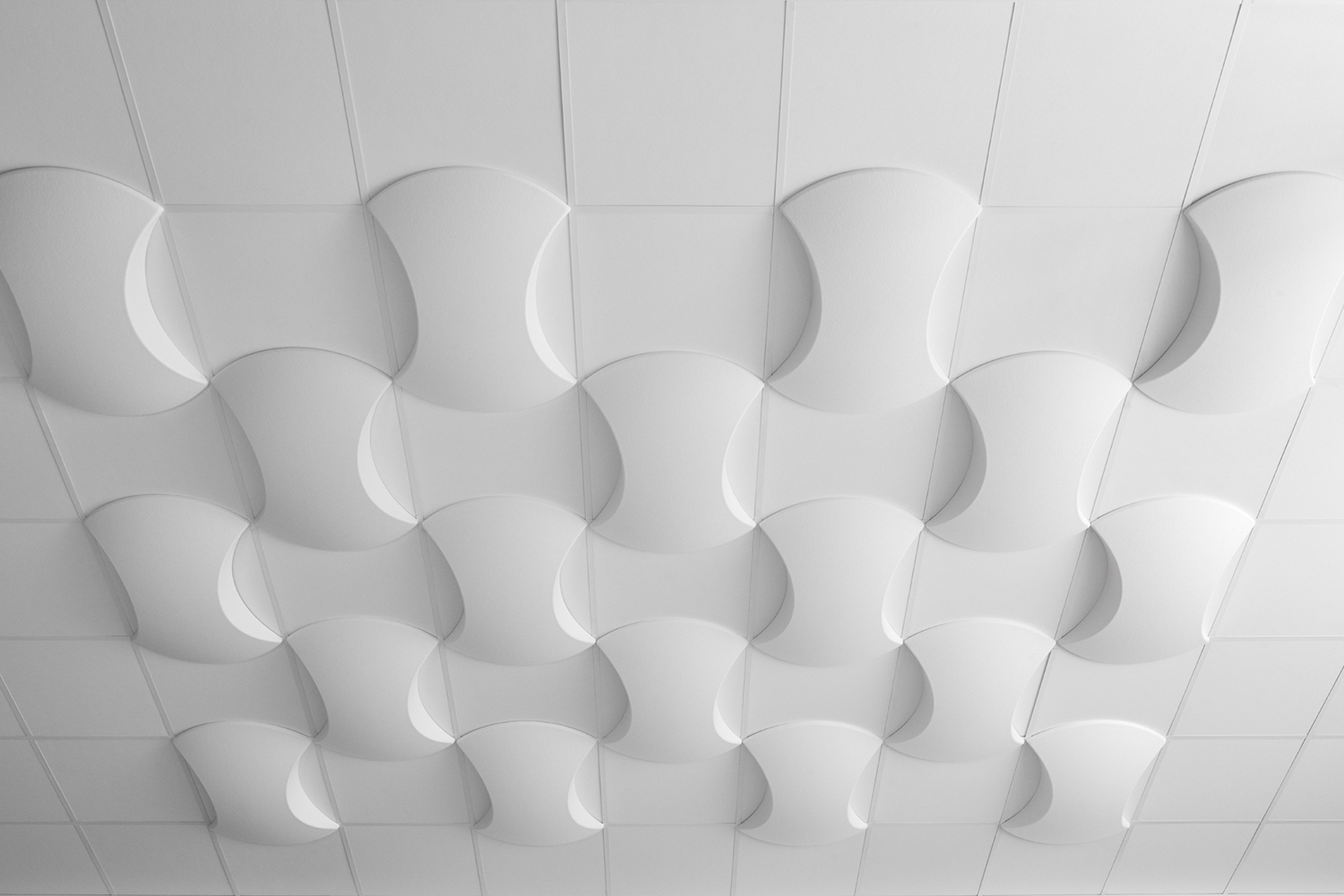 Alltför många karaktärslösa tak och väggar bidrar till intetsägande inomhusmiljöer. Sky är ett moduluppbyggt system som försöker ändra detta med hjälp av ett formspråk som ger rummet visuell energi samtidigt som akustiken förbättras. Nyckeln är enkelhet.