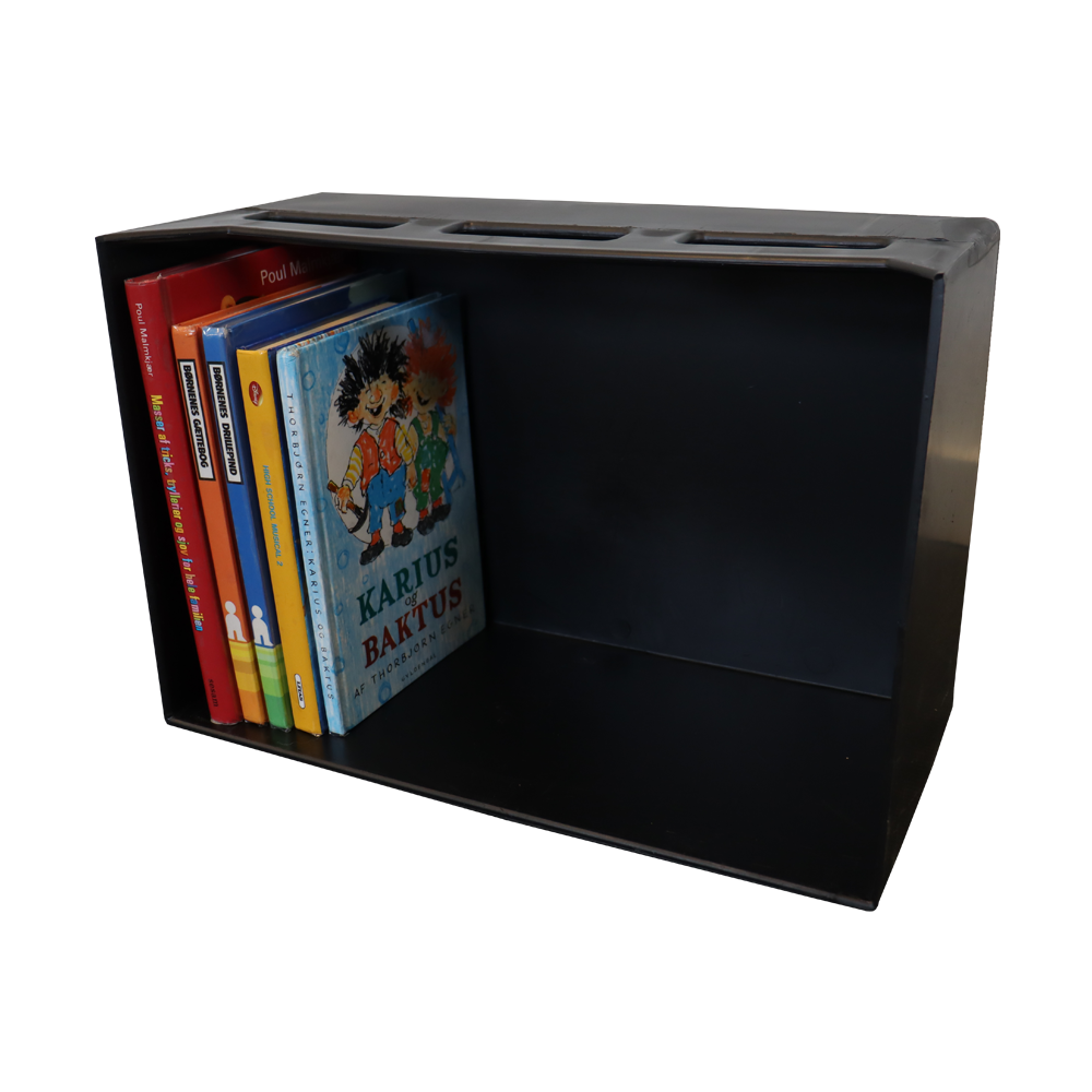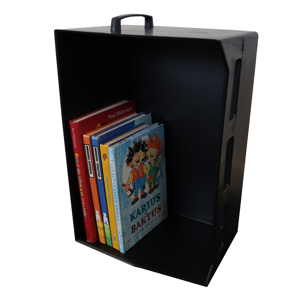 Solid bokbärare med handtag. För enkel förflyttning av ex klassuppsättningar.