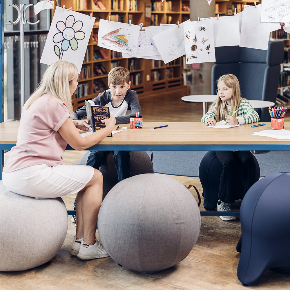 Ett perfekt komplement eller direkt alternativ till vanliga stolar och samtidigt en liten skulptural möbel som smälter in överallt i biblioteksinredningen, till exempel i studiemiljöer och sittgrupper men också för en liten paus mellan bokhyllorna.