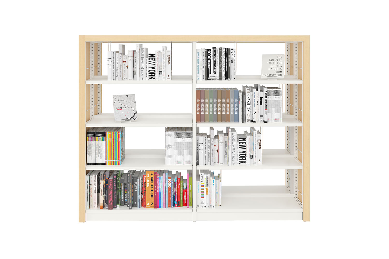 Detta hållbara hyllsystem med 30x30 mm perforerade stålrör passar perfekt för användning i bibliotek med stora volymer liksom i folk- eller skolbibliotek. Dess design med hylljustering i 25 mm mellanrum möjliggör enkel montering och justering utan att använda speciella verktyg. Hyllsektionerna är försedda med en mångsidig C-profil för att lätt kunna lägga på topp- och bottenhyllplanen.
